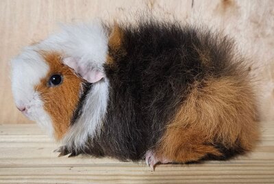LOBRA`S ELENA GEB. 15. 5. 2025 SCHWARZ- ROT- WEISS d.e. V. ADONIS WUSELWUTZEN AN DER HEETE / Schwarz-Rot-Weiss M. CHARLINE VON BÄRBELS MEERSCHWEINCHENBANDE / Schoko-Gold-Weiss EIGENZUCHT Bewertung auf der Tischschau der IG-Meerschweinchenfreunde am 28.09.2025 in Dülmen/ Deutschland Typ HV, Bau SG, Kopf HV, Augen SG, Ohren HV Haarlänge SG, Struktur HV, Haardichte SG, Haarlänge SG Farbe HV, Elastizität SG Kondition HV, Prädikat SG, 94 Punkte --------------------------------------------------------------------------------------------------------------------------------------------------------